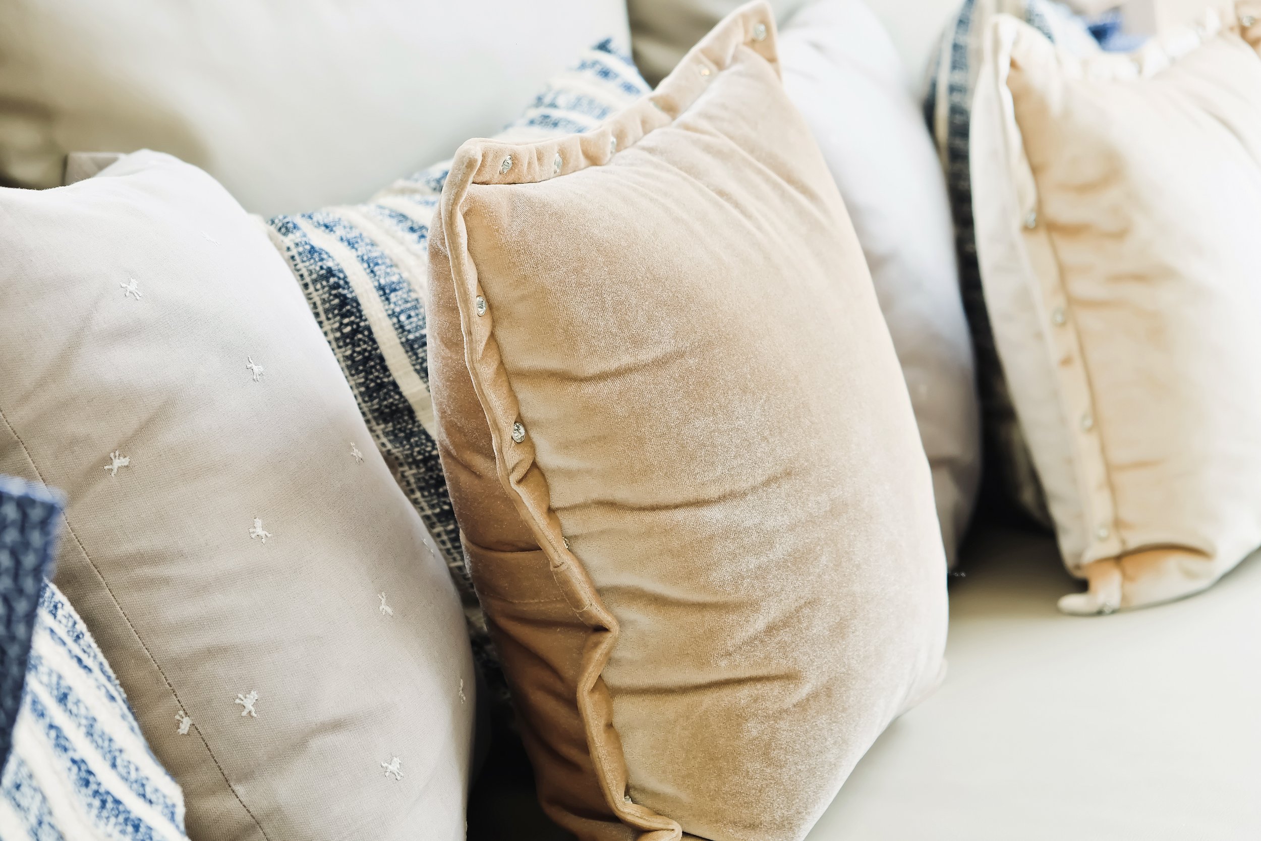 If you have outdoor pillows, wash or wipe them down often since they are exposed to the elements. Sun, rain, and dust can cause odors and fading, so give them a quick rinse or vacuum every few weeks.